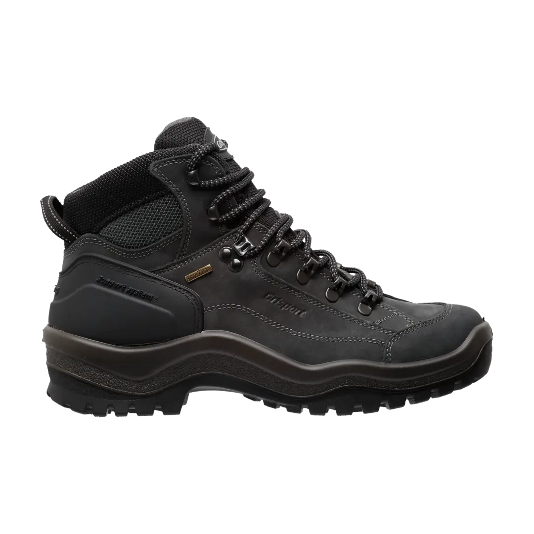 De Bergen Mid is een schoen uit de walking collectie van Grisport. Deze stevige wandelschoen is uitgevoerd met een New Hiking zool. Deze zool is klassiek in zijn ontwerp en heeft een gemiddelde hardheid. Ontworpen voor langdurig comfort en ... Lees meer biedt stabiliteit en grip op zowel verharde als onverharde wegen. De Bergen Mid is voorzien van een Support System, dit is een effectief sluitsysteem rondom de hiel. Het is speciaal ontworpen voor een perfecte controle tijdens het afwikkelen van de voet in alle fasen van de beweging. Het waterdichte en ademende Spo-Tex membraan is tussen de verschillende lagen van de schoen verwerkt.